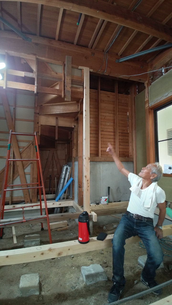 休憩中にベテラン大工さんにいろいろとレクチャーいただきました。