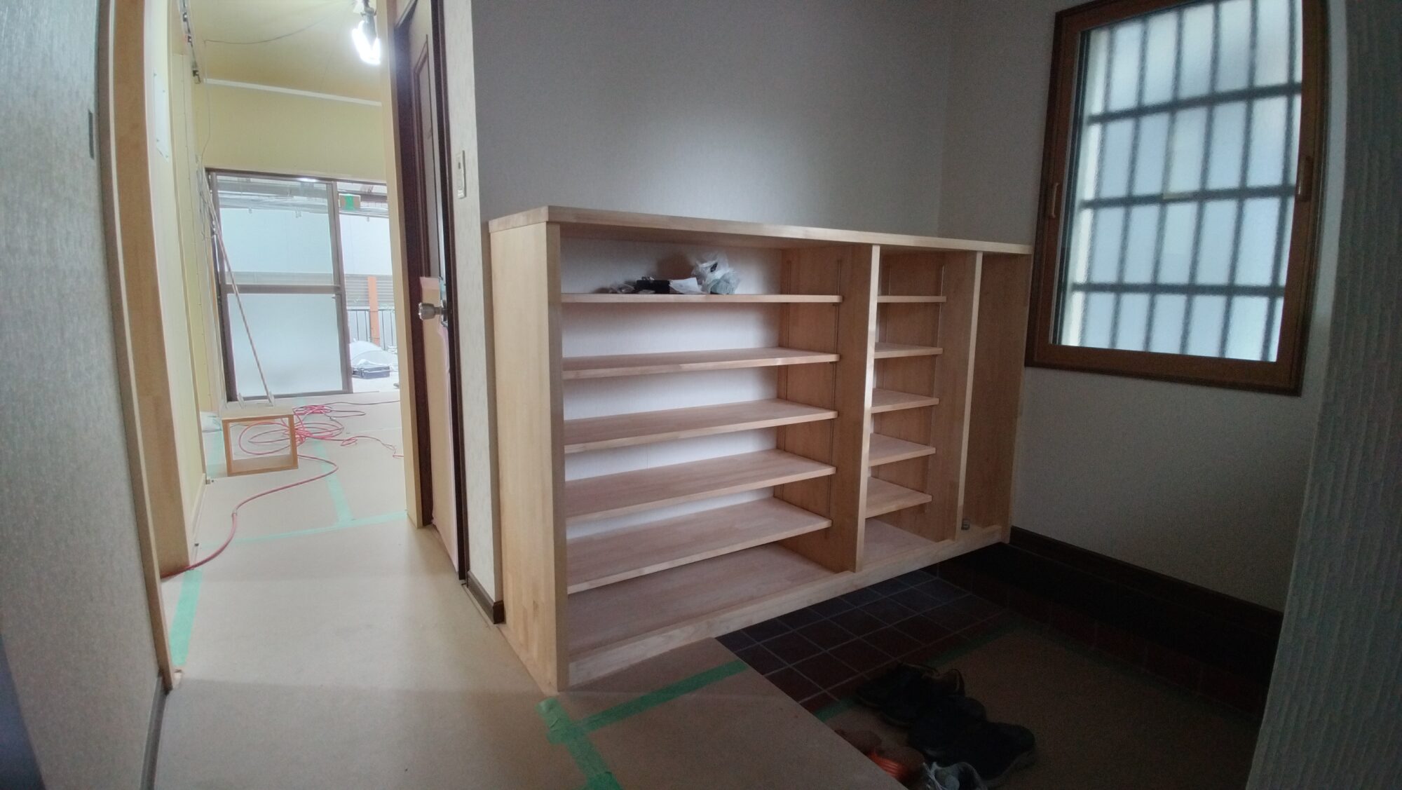新築と違って、床や壁が必ずしも水平・垂直ではないところ、調整しつつ、