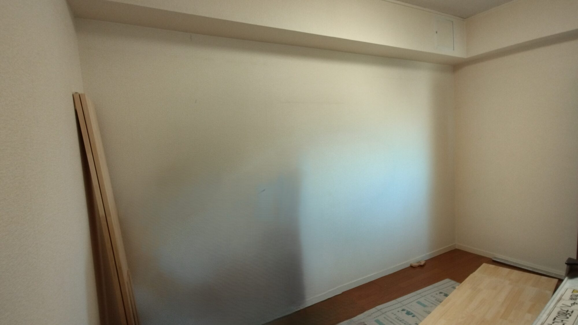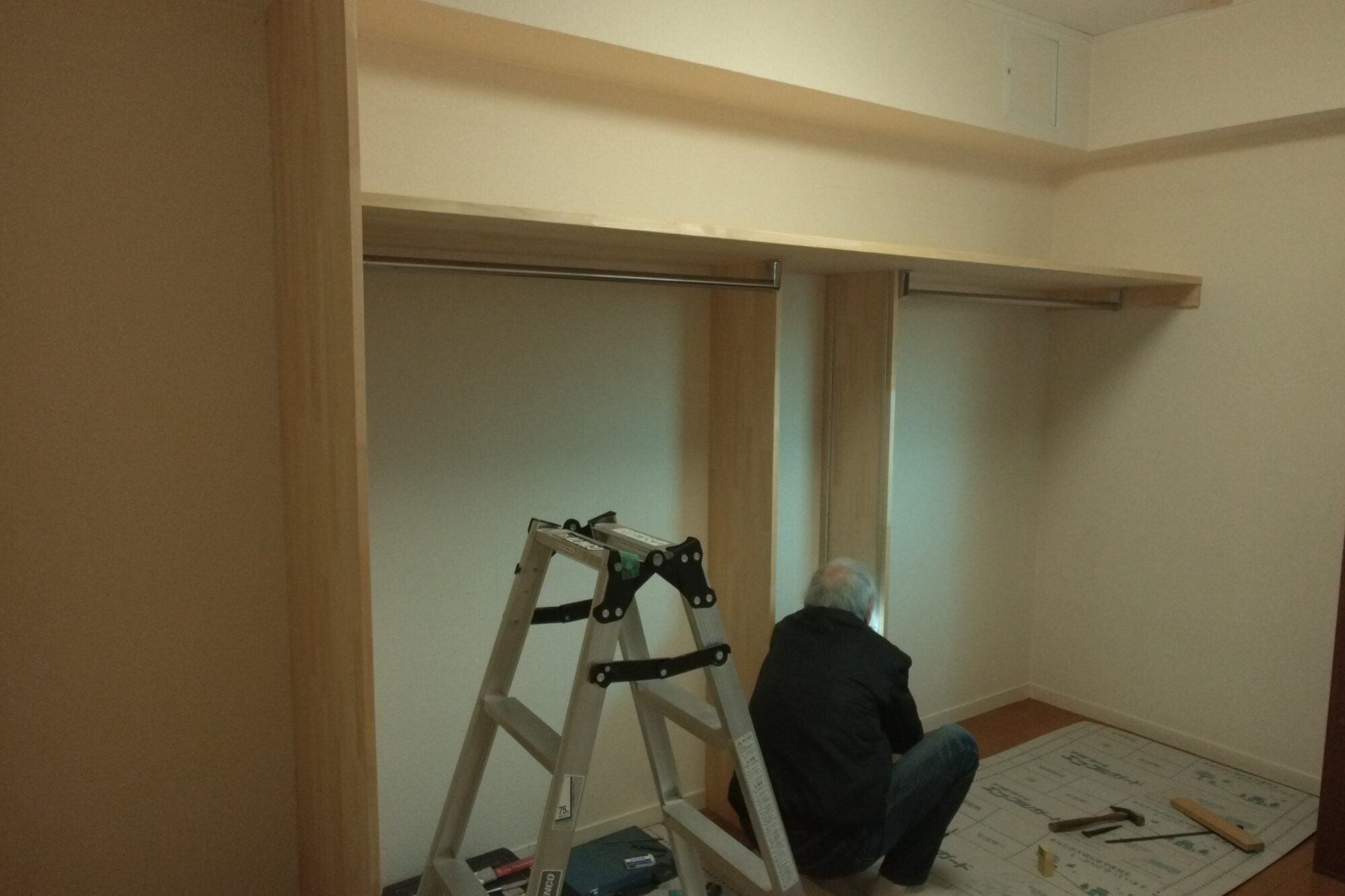 このたびマンションの1室、洋間の壁面に収納棚新設のご依頼をいただきました。
