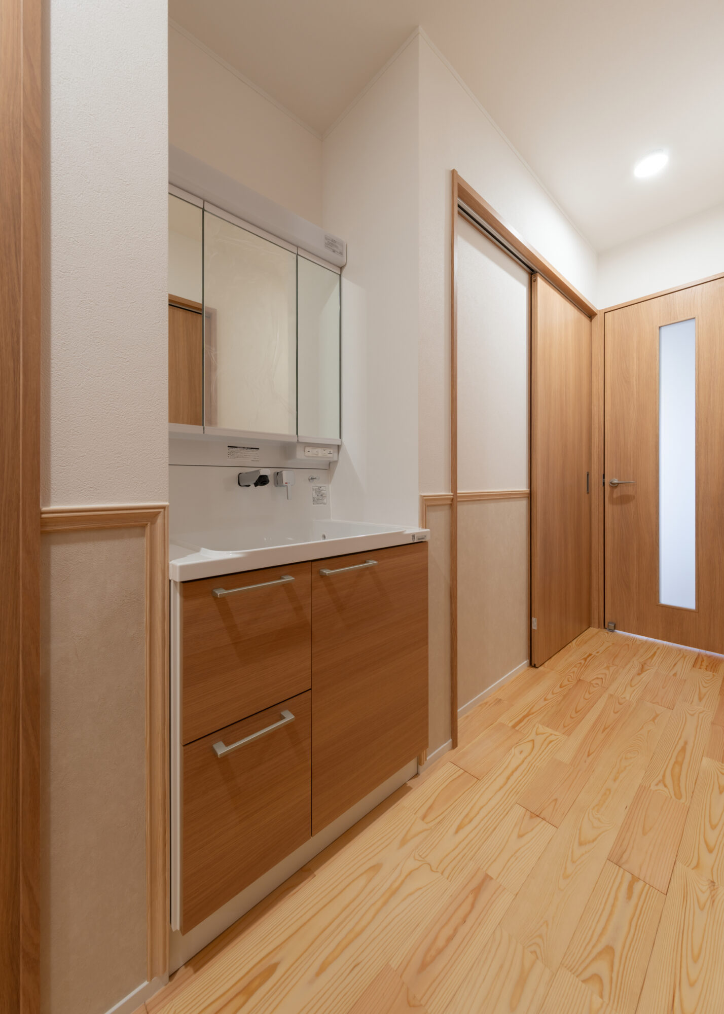 こまごまとしたもので溢れていた洗面スペースも、3面鏡、引出し収納ですっきり使えるようになります。