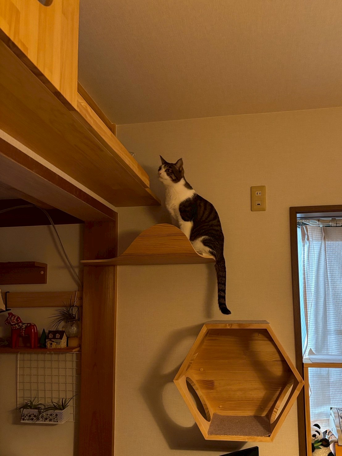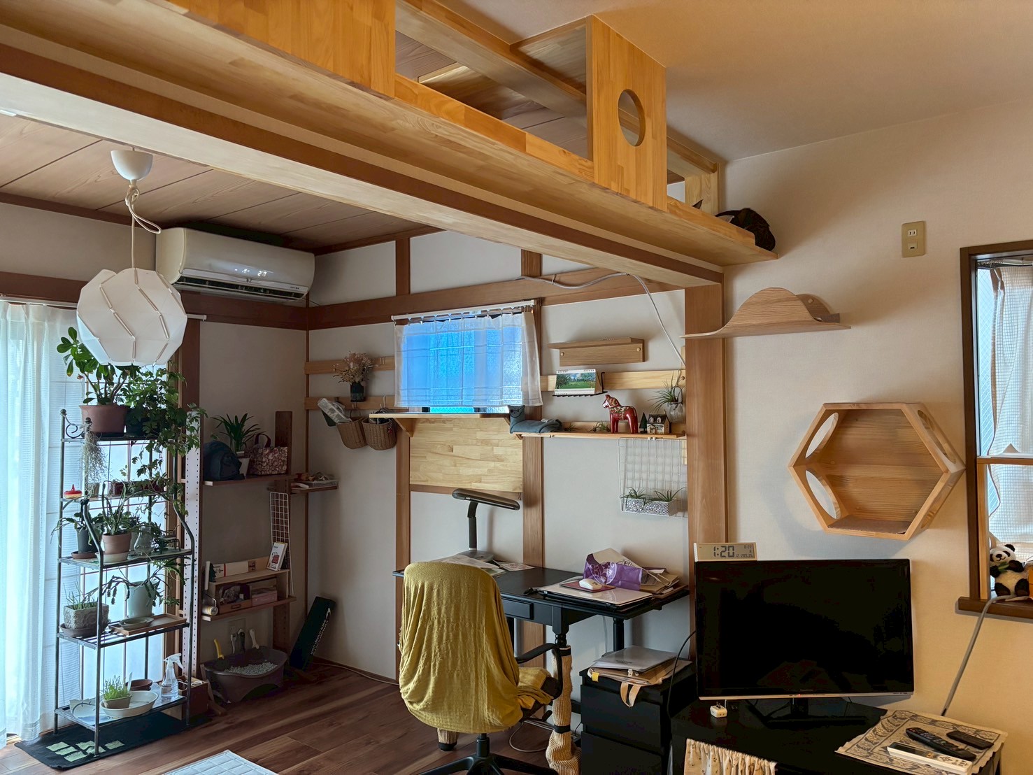 2匹の猫ちゃんの遊び場としてのキャットウォークの造作、収納の造作のご相談にはじまり、