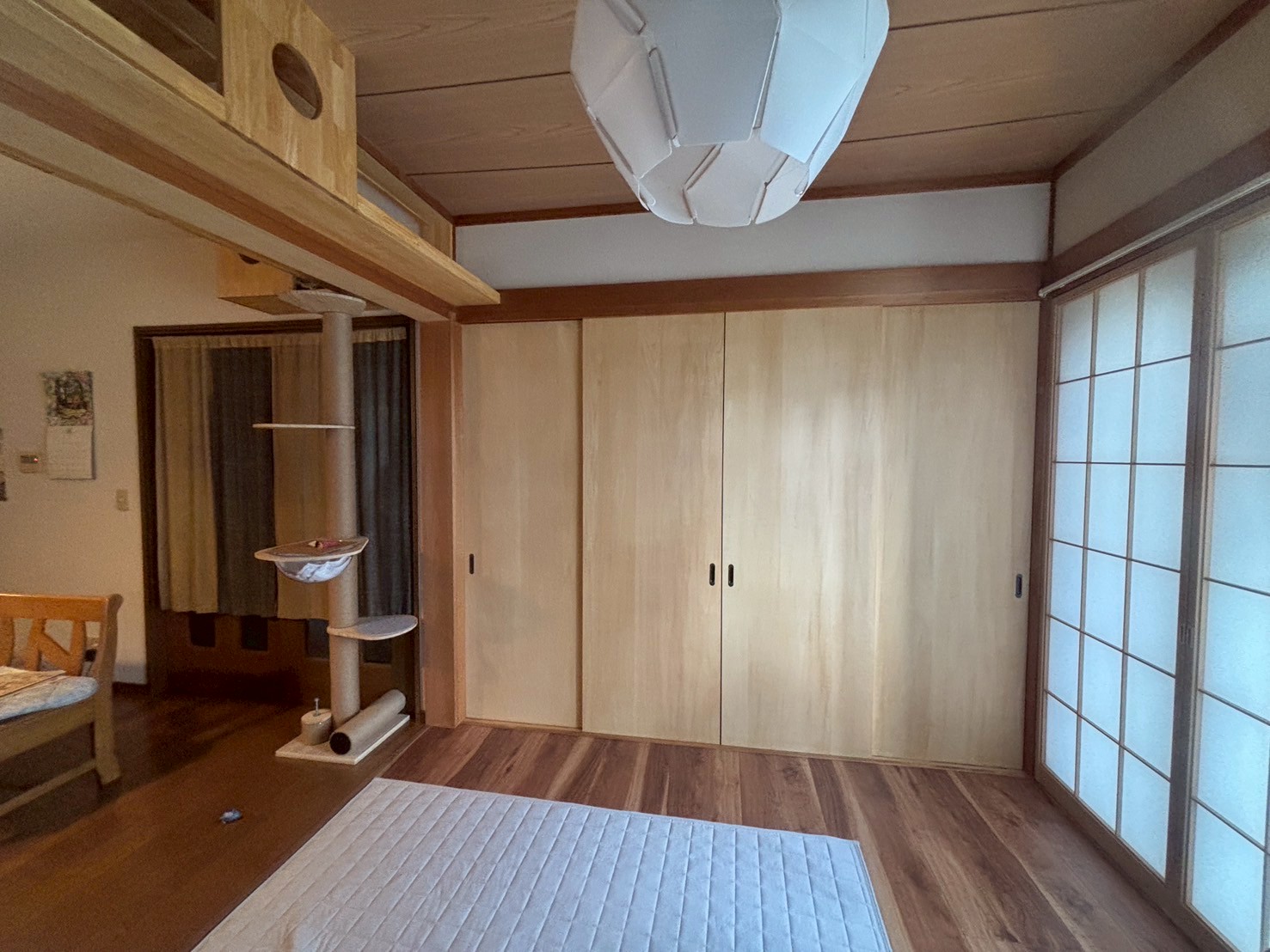畳をフローリングに、押し入れをシナベニヤの建具に、勝手口と掃き出し窓の交換、外壁の一部貼替も一緒にお任せいただきました。